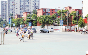 交通大道与工农路交叉路口虽然不是大的交叉路口,但仍有不少行人和非机动车通过。