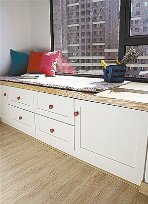 提醒:开放阳台、飘窗旁边要慎重使用储物功能。这些地方容易受潮,日晒严重、积灰多,有可能损害收纳之物,最好在远离窗户、靠近室内的位置设置收纳空间。