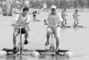 7月27日上午,100多名淮阳籍在校大学生分组在龙湖举行水上自行车比赛。据了解,为了激发莘莘学子热爱家乡、关注淮阳的热情,共青团淮阳县委利用暑期组织开展了一系列“心系家乡、爱我淮阳”大学生暑期社会实践活动。 晚报记者 杜欣 摄