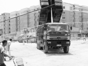 本报讯 7月25日上午,在项城市区,一辆自卸货车卸货后忘记把车斗归回原位就上路了,结果挂断电线(如图),导致7个供电台区近2000用户断电。此事发生后,该县电力人员冒着酷暑奋力抢修近11个小时,于当日21时40分许恢复供电。