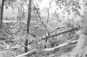 7月29日16时许,强对流天气袭击商水县平店乡秦黄村等部分村庄,雷雨大风造成部分地块玉米植株出现倒伏现象,一些树木被大风刮断。晚报记者 张志新 摄