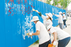 周口中心城区正如火如荼地开展创建省级文明城市活动,佳利地产积极响应周口市委、市政府的号召,出动40名义工队员,走上街头清除非法小广告,向城市“牛皮癣”宣战,为“创建”工作做出奉献。记者 李寒 摄
