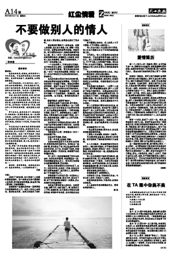 曾有一个好友,恋爱了一次又一次。每次,她都说是别人配不上她。甚至于她会在开始一段新感情之前,将自己的情感经历统统讲给对方听。结果,可想而知,那个原本打算爱她的人,受不了她的爱情简历表如此复杂,便不再和她见面了。我并没有说要刻意隐瞒些什么,只要在不伤害对方的前提下,对于过去的事情就没必要回答。人都是自私的,谁都无法忍受自己爱着的这个人情感经历如此丰富,可是,谁都不可能完全没有情感经历。那样的人不真实,同时也不会更好地去爱别人。