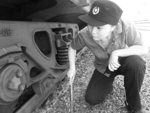 全国各地的铁路检车员多为男性,但杨锐作为一名女性,已从事这项工作12年。昨日,在周口火车站,记者用镜头纪录下了她检车的过程。
