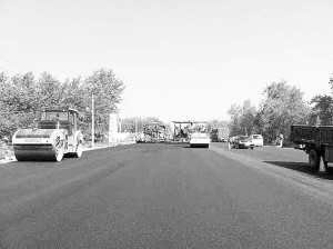 8月7日上午,周口市区至西华县城快速通道(西华段)施工现场,一辆摊铺机正在摊铺油面。该通道为一级公路,今年3月20日开工建设。目前西华段大部分路段进入油面铺筑阶段,预计今年10月1日竣工通车。记者 张猛 摄