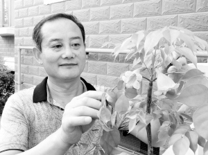 “俺家的幸福树开花了。我养花这么久了,还真没见过幸福树开花。”王维忠介绍,这株幸福树是2010年买的,买回来没多久,树的叶子就几乎掉光了,看着光秃秃的树干,王维忠想了很多办法挽救。今年7月,王维忠把整盆树搬到了楼外面,又为树施了肥,没想到,一个多月后,幸福树竟然开出了6朵漂亮的小花。
