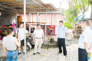 8月9日上午9时许,市园林部门的人员和川汇区城管局驻人和办事处的执法人员一齐出动,对扎堆严重的沙颍河北堤大庆路至八一大道段的无证饭店占用绿地情况进行调查取证。在紧邻八一大道桥的西侧,有一间铁皮房子,长期以来一直占据着桥边的绿化带,非常影响市容。执法人员责令房主人将房子拆除,房主人是一位老汉,他称自己身体不好,让执法人员帮助拆除。由于现场没有工具,执法人员只得日后再做处理。
