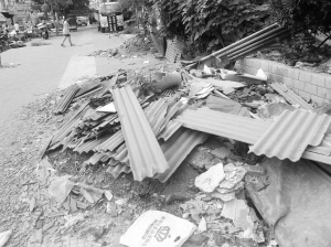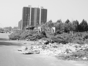 8月12日,有读者向本报反映,称有人向文昌大道周口师范学院西侧路边倾倒建筑垃圾。8月13日上午,记者来到周口师范学院西侧围墙外,发现这里的路面上堆放着不少建筑垃圾及植被垃圾,十分醒目(图三)。附近市民告诉记者,这些垃圾是最近才出现的。