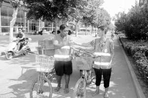 无论春夏秋冬,他们每天凌晨4时起床,骑三轮车到中州大道,开始一天的工作,直至21时工作结束。