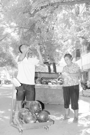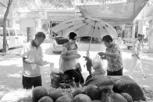 王其伦说,这一段他们每天凌晨3时起床,拉着满满一车瓜赶到周口市区育新中路去卖。一车瓜他们有时一天就能卖完,有时两天才能卖完。“西瓜很甜,但出来卖瓜却很苦,特别是今年种瓜的农民多,瓜价一直上不去。这一车5000斤瓜全是俺两口亲自摘的,可把俺们累坏了。”虽然一直汗流浃背,但王其伦夫妇一直忙着为顾客挑选西瓜、称量,把香甜送给千家万户。