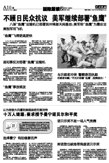不顾日民众抗议 美军继续部署“鱼鹰”
