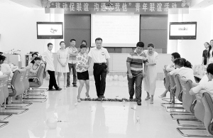 8月13日下午,周口移动公司联合多家单位共同举办了“移动促联谊 沟通你我他”青年联谊活动,共吸引42名单身青年参加。“对对碰”“踩气球”“体力大考验”等互动游戏深受大家欢迎,活动现场欢声笑语不断。活动结束后,大家纷纷交换个人信息,希望进一步加强联系。通讯员 水莹 摄