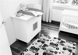 提示:如果要选择地毯的话,最好选择容易清理的,比如块状的短毛地毯,因为长毛地毯容易寄生细菌,产生螨虫,对孩子的身体不好。