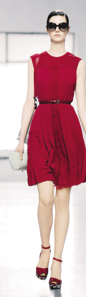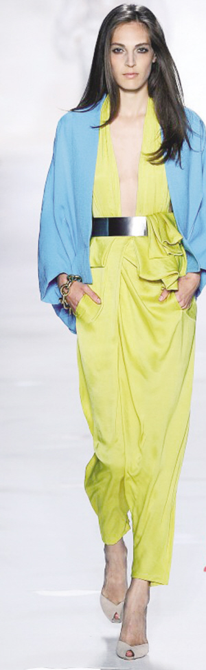 今季最热,除了饱和更要荧光。总结起来,鲜亮跳跃的柠檬色,永远纯正的大红,以及夏天必备的蓝色,最受欢迎。缪缪的大红,LV的鲜黄,艾莉·萨博的海蓝,都留在我们对2013春夏巴黎秀场的印象中。至于怎么使用,有强烈的视觉冲击力,又不能过重刺激眼球,既要活泼高调,又不失轻柔飘逸,这是以下会提到的进阶版。