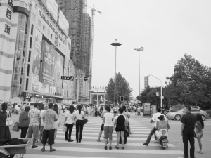 七一路与八一大道交叉口处于中心商业区,是市区较繁忙的十字路口之一,车流量较大,每当红灯亮起时,斑马线前总是停着许多等待通行的车辆与行人(图一、图二)。