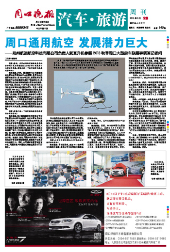 受周口报业集团房车联展组委会邀请,郑州航远航空科技有限公司将派出直升机,参加9月6日至8日在周口市体育中心举行的2013秋季周口大型房车联展。近日,郑州航远航空科技有限公司有关负责人(以下称“郑州航远”)就参展事项接受了本报记者(以下称“记者”)的专访。