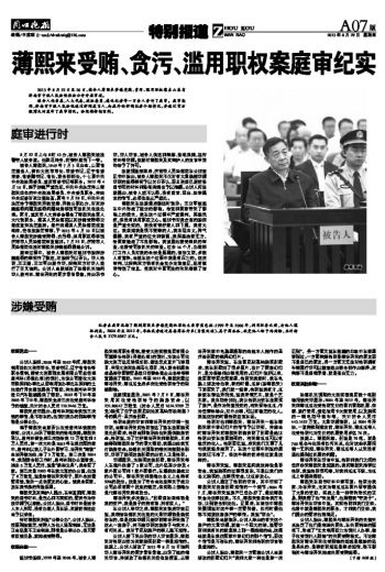 薄熙来受贿、贪污、滥用职权案庭审纪实