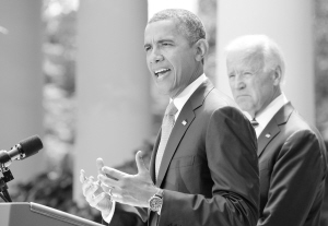 当地时间8月31日,在美国首都华盛顿白宫玫瑰园,美国总统奥巴马(前)就叙利亚局势发表讲话。