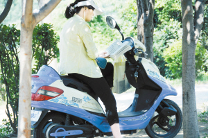 图三:昨日13时许,滨河路上,一女子骑在电动车上仔细地读着书。