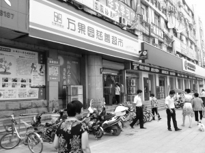 本报讯 市民艾大妈家住周口市区文明北路某小区,她经常到附近的一家万果园超市购物。9月2日,艾大妈前去购物时不经意间抬头看了看超市门头,发现这家超市的名称改成了“万果园慈善超市”(如图),这让艾大妈产生了疑问:“知道万果园的超市有的叫‘社区超市’,有的叫‘便利店’,‘慈善超市’这个名称还是第一次见,有啥不一样吗?”