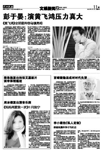 本报综合消息 说起黄飞鸿很多人印象中还是李连杰塑造的经典形象,而当年演黄飞鸿的李连杰还处在29岁的“当打之年”。很难想象,近20年间居然成了“黄飞鸿”这个题材的真空期。今年终于又有人“敢动”黄飞鸿了——9月3日,投资达1.3亿元的功夫巨制《黄飞鸿之英雄有梦》3日在乌镇邀请媒体探班。彭于晏版黄飞鸿造型终于曝光。现场,导演周显扬携身着戏服的彭于晏、王珞丹、井柏然、王祖蓝、秦俊杰等一众主演亮相,一天三练的彭于晏练得太苦以致几近失声,他坦言自己“31岁的老筋拉起来压力真的很大”。