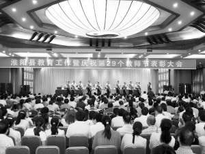 9月7日上午,淮阳县召开教育工作暨庆祝第29个教师节表彰大会。会议表彰了大连乡等6个尊师重教先进乡镇,650名教师分别获得十大师德标兵、十佳校长、明星班主任、优秀教师和先进教育工作者等荣誉称号。会上共发放奖金30万元和价值18万元的奖品。曹参团 摄