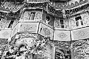 张同师说,在旧时的纸扎品中最能体现其精湛工艺的当数扎制高大的楼库。这种楼库一般高2米左右,宽约1.5米,为二层或三层的古式建筑,楼内上下隔成房间若干,厅堂、厨房、卧室、猪栏等一应俱全。厨房里有草锅灶,灶台上摆放着刀、案、瓢、盆,卧室里安排有宽大的踏铺床,床铺上被褥叠放整齐,楼库的外墙用灰纸糊成,用白线画成砖缝,屋顶上画着青色小瓦,所有的门窗、隔扇一律都是雕刻、镂空的花纸装饰,整个楼库色泽艳丽、工艺最复杂。