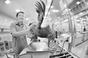 上海市中心区域最大的活禽零售市场——虹口区三角地水电菜市场将于9月13日正式营业。据悉,该市场8月30日开始试营业,活禽区与其他产品销售区严格分区,并安设了隔离门、隔离窗和独立排风设施等。活禽交易区分为购买区、销售区和宰杀区,市民在销售区零售窗口前选定活禽后先在付款处买单,然后到发货处提取现杀的禽类,可尽量避免直接接触活禽,所有商品都可以进行追溯码查询。新华社发