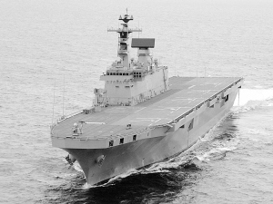 “独岛”号以韩国与日本存在争议的独岛(日本称竹岛)命名,是韩国最大军舰,号称亚洲最大登陆舰。作为“独岛”级首舰,“独岛”号由韩国韩进重工业建设公司制造,2005年完工,2007年服役,长199米,宽31米,最大航速23节即每小时23海里(42.6公里),满员300人。