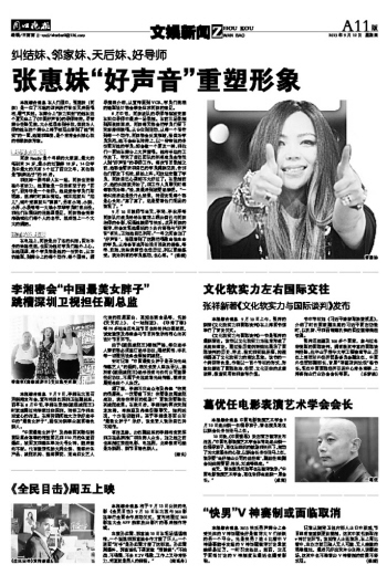 本报综合消息 在人们眼中,张惠妹(阿妹)是一位了不起的亚洲流行音乐天后级唱将,霸气四射。在舞台上“妹力四射”的她在这个夏天坐上了《中国好声音》的导师转椅。尽管舞台经验无数,大小奖项拿到手软,但初为人师的她在这个舞台上终于被观众看到了她“真实”的一面,她谦和谨慎,是个常常会纠结心软的邻家妹妹形象。