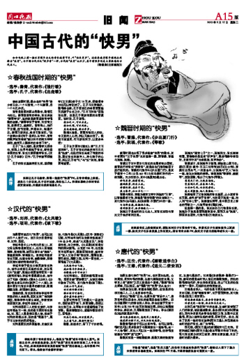 如今电视上有一档以男歌手为主的音乐选秀节目,叫“快乐男声”。这些参选男歌手被观众戏称为“快男”。与中国古代不乏“好声音”一样,古代的“快男”也不少,其中有很多还是大家熟悉的古代名人。(转载自《北京晚报》)