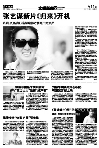 本报综合消息 9月16日,张艺谋加盟乐视后的第一部电影《归来》开机仪式在北京首钢进行,身着红色T恤的导演张艺谋携主演巩俐、陈道明亮相,三位主创相继发表了简短的致辞。张艺谋说:“我有个很简单的愿望,希望和新朋友、老朋友一起,共同拍好这部电影。”巩俐表示对该片寄予厚望,陈道明则幽默称希望电影早关机可以早回家。