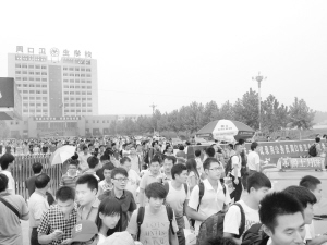 9月21日,参加周口招录公务员考试的考生陆续走出考场。据悉,今年我市将有6611名考生参加公务员考试笔试,其中,最热岗位报考比例为396∶1,最冷岗位报考比例为5∶1。晚报记者 张擘 摄