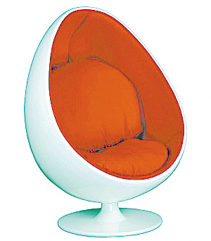 蛋椅就属于综合体现这些理念的作品,由丹麦设计师雅各布森1958年设计。作为一名北欧的设计师,他让创意与舒适成为人们休闲的主旋律。他当时不仅设计了蛋椅,还设计了天鹅椅,从这两件作品来看,首先外形极具感染力,红色的“蛋”与白色的“天鹅”,让人在梦幻与现实之间游移,亦梦亦真。其次,这两件作品可以说完全是一种雕塑艺术品。