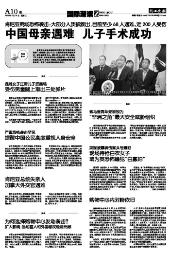 肯尼亚商场恐怖袭击:大部分人质被救出,目前至少68人遇难、近200人受伤 中国母亲遇难 儿子手术成功