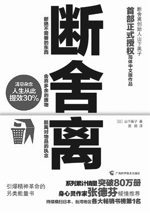 总而言之,断舍离就是通过收拾自己居住的空间,让自己从看得见的世界走向看不见的世界。“断”=断绝想要进入自己家的不需要的东西。“舍”=舍弃家里到处泛滥的破烂儿。通过不断重复“断”和“舍”,最后会到达这样的状态:“离”=脱离对物品的执念,处于游刃有余的自在的空间。