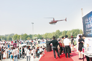 随着抽奖活动的结束,产生的幸运观众乘坐泛华新城提供的直升飞机的时刻来临了。几名幸运乘客在飞行员的引导下,怀着愉悦的心情登上飞机,直击苍穹,在蔚蓝的天空中自由自在地放飞自己的梦想。在周口这座亲切的城市里,在这片熟悉的天空里,将孕育自己的土地和润泽家乡的美景以及即将入住的温暖的家尽收眼底,家土情怀尽在其中,人们有理由为居住在这片光辉的土地和舒适的家——泛华新城而自豪!