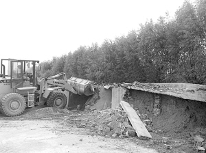 首战“告捷”,办事处“乘胜追击”,转到相隔不远的庄子里继续拆除下一个目标。由于该处民房突击建在农田里,树木较多,拆除时要留意不能碰到地下电缆和警示牌,因此挖掘机进场颇费了一番工夫。在经历一番波折后,当日17时许,该处民房也顺利拆除完毕。临离开前,办事处向隔壁另一家民房的房主下达了“最后通牒”,要求其限期内必须搬离。据悉,该户居民前年从前房主手中以17万元的低价接下这块超过半亩地的土地(含4间房屋),事实上,该房占的是农田,且早已纳入拆迁范围。