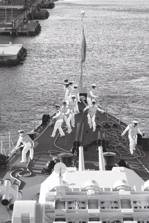 当地时间9月28日下午5时(北京时间下午3时),中国海军导弹驱逐舰青岛舰解缆启航,结束了对澳大利亚纽卡斯尔为期3天的友好访问,开始向东盟防长扩大会议首次海上安全实兵演习海域航渡,9月29日将在杰维斯湾参加兵力海上集结。当天上午开始,与青岛舰同泊纽卡斯尔港的美国海军“乔辛”号导弹巡洋舰、新加坡海军“努力”号登陆舰先后启航向演习海域航渡。东盟防长扩大会议首次海上安全实兵演习将于9月29日至10月1日在澳大利亚东部杰维斯湾及悉尼港举行,演习包括联合巡逻、单舰登临、协同登临等6个方面内容。(查春明 摄)