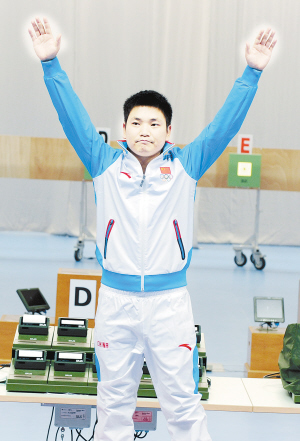 当日,中国队的3名枪手先是以总成绩1886.0环射落团体冠军,这也是中国代表团在本届赛会上获得的首枚金牌。在之后的个人赛决赛中,冠军王涛的成绩为208.6环,资格赛中排名第一的杨浩然以2.2环之差位居其后,铜牌被刘志国获得。