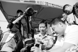 本报讯 为有效遏制盗抢电动车案件的发生,周口市公安局七一路派出所在电动车防盗工作上出新招,他们在辖区内设立5个免费为电动车打码“上户口”的实名登记服务点,今年国庆期间,民警轮流值班,忙着为电动车“上户口”(如图)。