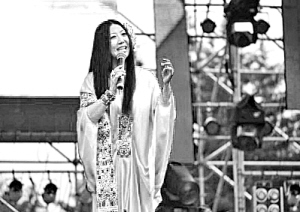 本报综合消息 文化名人杨二车娜姆女士于国庆长假现身丽江天雨音乐节现场,让现场的观众惊喜的是,继“快男”评委后,沉寂了7年的杨二车娜姆第一次在家乡音乐节开腔献唱了歌曲《女儿国》。招牌一样的大花卡在鬓角更加衬托她的民族加异域风情。