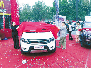 9月29日下午,东风风行4S店在万果园人民商场店门前举办新景逸X5上市发布会。图为发布会现场。
