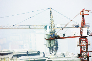 10月8日,周口市区一建筑工地上,工人在雾霾下施工。当日是二十四节气中的寒露节气。由于近期昼夜温差较大,夜间易形成逆温层,扩散条件不好,空气中浮尘可吸入颗粒物累积等因素造成我市当日大部分县市出现雾霾天气。