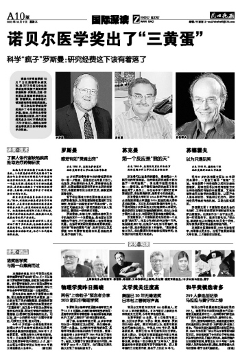 诺贝尔医学奖出了“三黄蛋”
