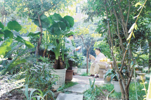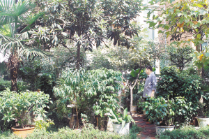 李洪学是一名退休干部。2008年他搬到这里居住后,就开始规划布置自己的小院。木槿、木瓜、枇杷、柿子、石榴等迅速在小院“扎稳脚跟”,随后玉兰、红豆杉、富贵子、春羽、滴水观音、幸福树等植物也崭露头角,小院因此显得生机勃勃。李洪学还在小院里设置了大理石桌椅,配上错落有致的绿色植物,让人仿佛置身绿色的海洋。李洪学的小院吸引了众多邻居,更是孩子们的乐园——捉迷藏、摘果实都是孩子们喜爱的游戏。