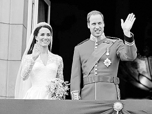 威廉王子与凯特王妃的巡礼照(上)和婚礼照(下)