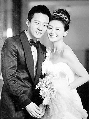明星大S与汪小菲的结婚照(上)和婚礼照(下)
