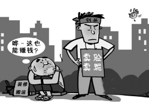 商品社会,创意无限。为创业,不惜抛弃面子在街头贱卖尊严,创意可谓离奇,勇气也可嘉。只是,文明社会的商业行为,不但要符合公俗良序,还需恪守法律,让人吐口水、抽耳光,在“卖方”是有失人格尊严,而对“买方”,不仅有悖文明和社会道德,且有违法之嫌。即便“愿打愿挨”,也不宜提倡。