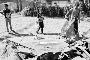 10月13日,在埃及南部城市卢克索,当地村民发现军用飞机残骸。